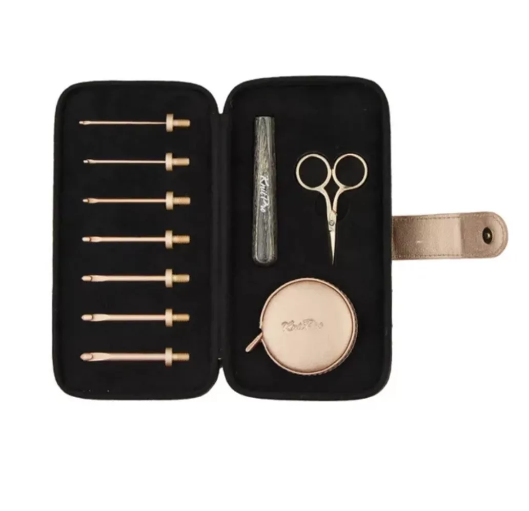 Avec le kit de démarrage KnitPro Oasis de crochets interchangeables, vous disposez d’un ensemble complet de crochets interchangeables. Ce kit comprend les éléments suivants :